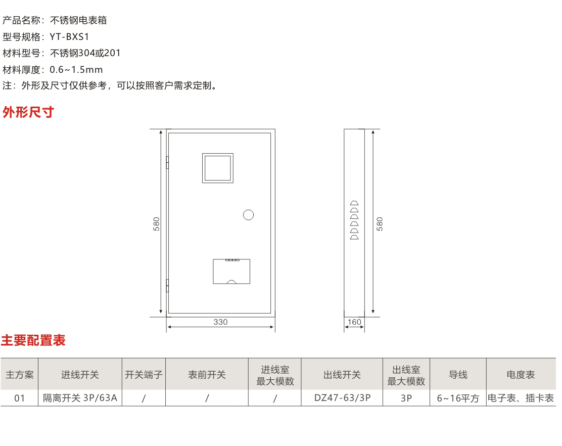 YT-BXS1不锈钢电表箱
